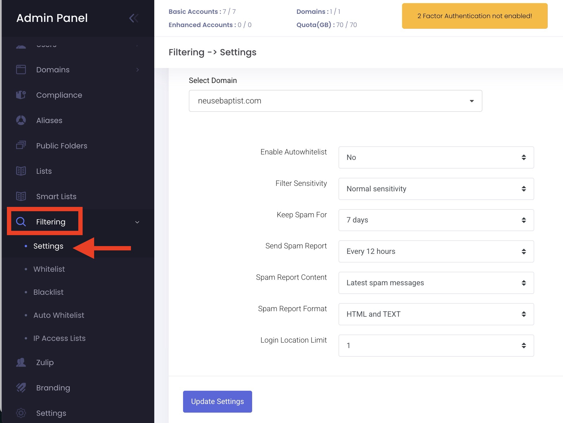 As an email admin, you can control a number of parameters for the mailboxes on your domain as it pertains to the spam filtering features utilized by the email platform.